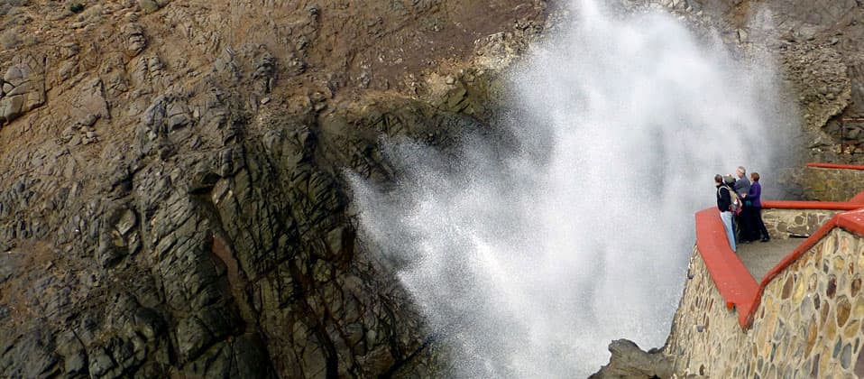 Als erstes geht die Fahrt nach Ensenada. Hier können Sie Geld wechseln oder noch Fehlendes für Ihr Reisegepäck einkaufen. Kurz nach Ensenada fahren wir rechts ab von der Hauptstrasse „Transpeninsular No.1“ und besuchen La Bufadora. Wie der Name schon sagt, pufft es ganz kräftig, wenn die Wellen die Höhle in der Felswand füllen und die Luft dabei rausgepresst wird. Ein Naturschauspiel ähnlich einem Geysir. Die Fahrt geht durch eine schöne Landschaft weiter in das gut 200km entfernte El Rosario, wo wir unser Hotel beziehen.